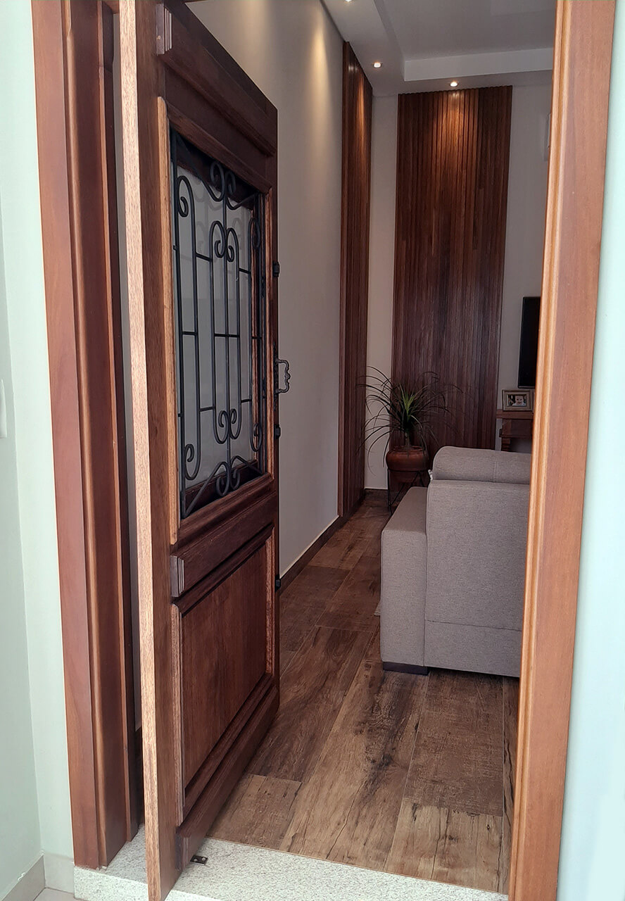 As portas maciças possuem uma durabilidade maior do que outros materiais, trazem um teor de requinte além de dar um aconchego ao ambiente.